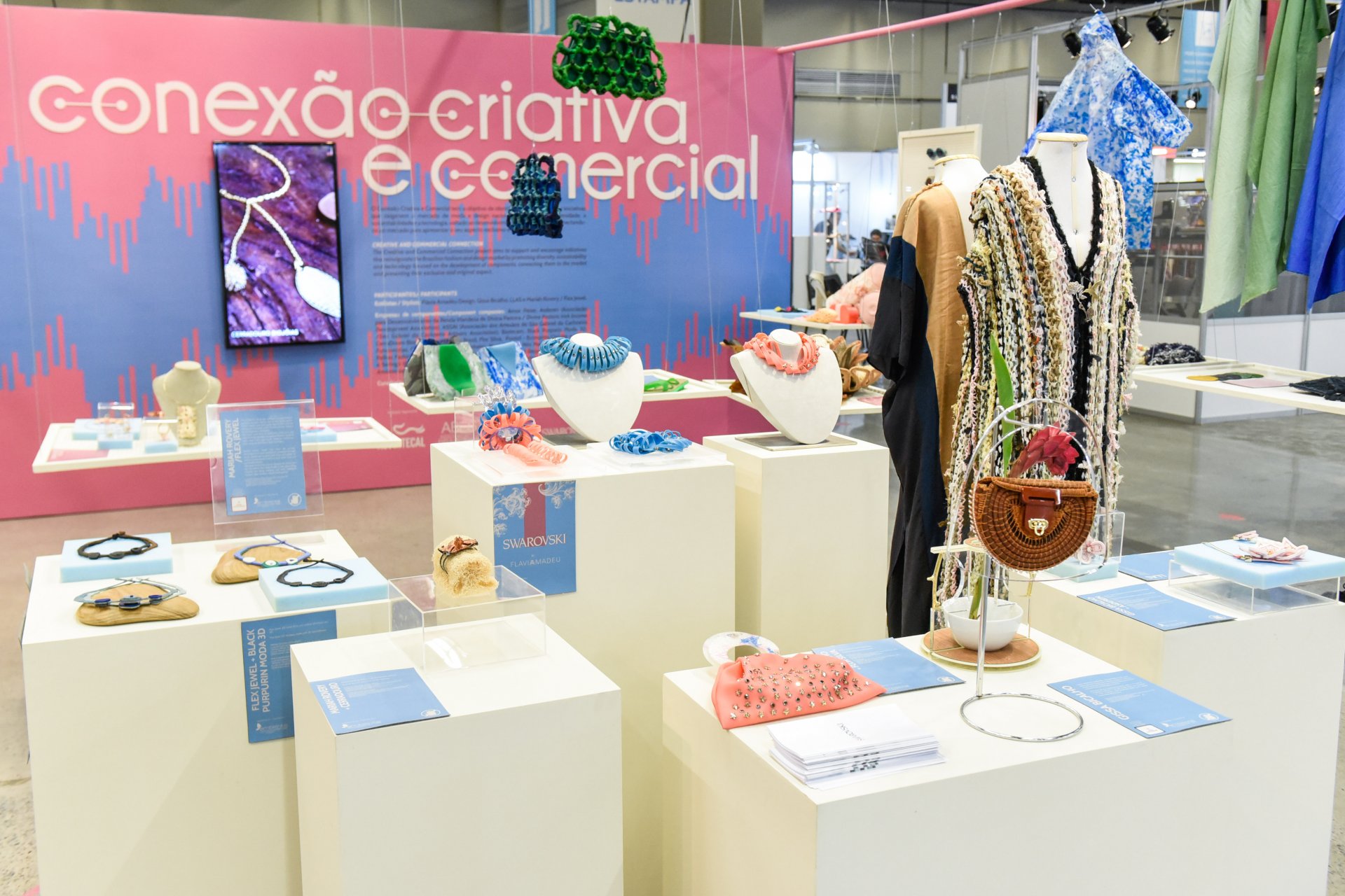 Já o Conexão Criativa é um espaço voltado para as empresas apresentarem componentes de impacto e novidades para o mercado de moda, encorajando a pluralidade e a riqueza do design e do artesanato brasileiro.