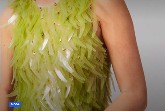 Designers adornam vestido de alta costura com lantejoulas feitas com bioplástico de algas