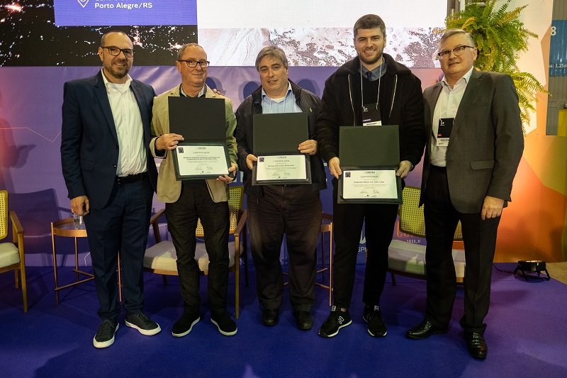Após a palestra, os presidentes da Associação Brasileira das Empresas de Componentes para Couro, Calçados e Artefatos (Assintecal) e da Associação Brasileira das Indústrias de Calçados (Abicalçados), Gerson Berwanger e Haroldo Ferreira, subiram ao palco para entregar a certificação Origem Sustentável para mais três empresas: Dublauto (nível Prata), Reginato Metais (nível Prata) e Branyl (nível Bronze).